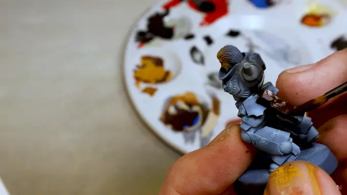 Successivamente, dalla stessa gamma di vernici Vallejo, utilizzeremo il rame.
