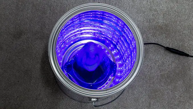 The reason I’ve picked a paint tin is becasue teh inside is already reflective. You will lose a lot of the UV’s power in reflected light but it’s still better to have some than none. Some people have gone as far as lining the inside with Aluminium tape to increase the reflectivity of the surface. For the amount of UV light that would reflect over the normal lining of a tin, I just couldn’t see it was worth the effort. But go ahead and do that if you want.